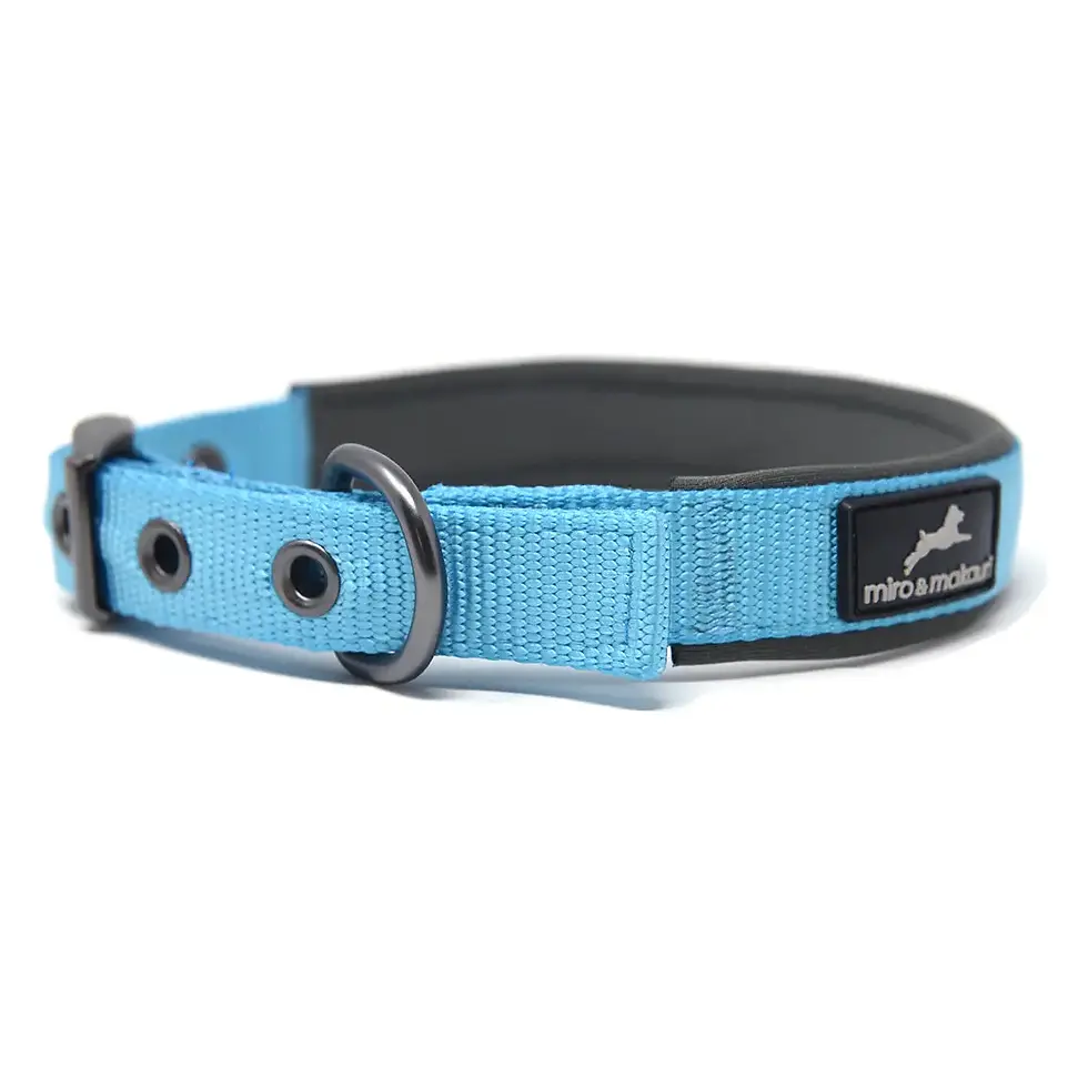 Padded Nylon Buckle Dog Collars 2.5cm x 45-55cm (60cm) Aqua Blue